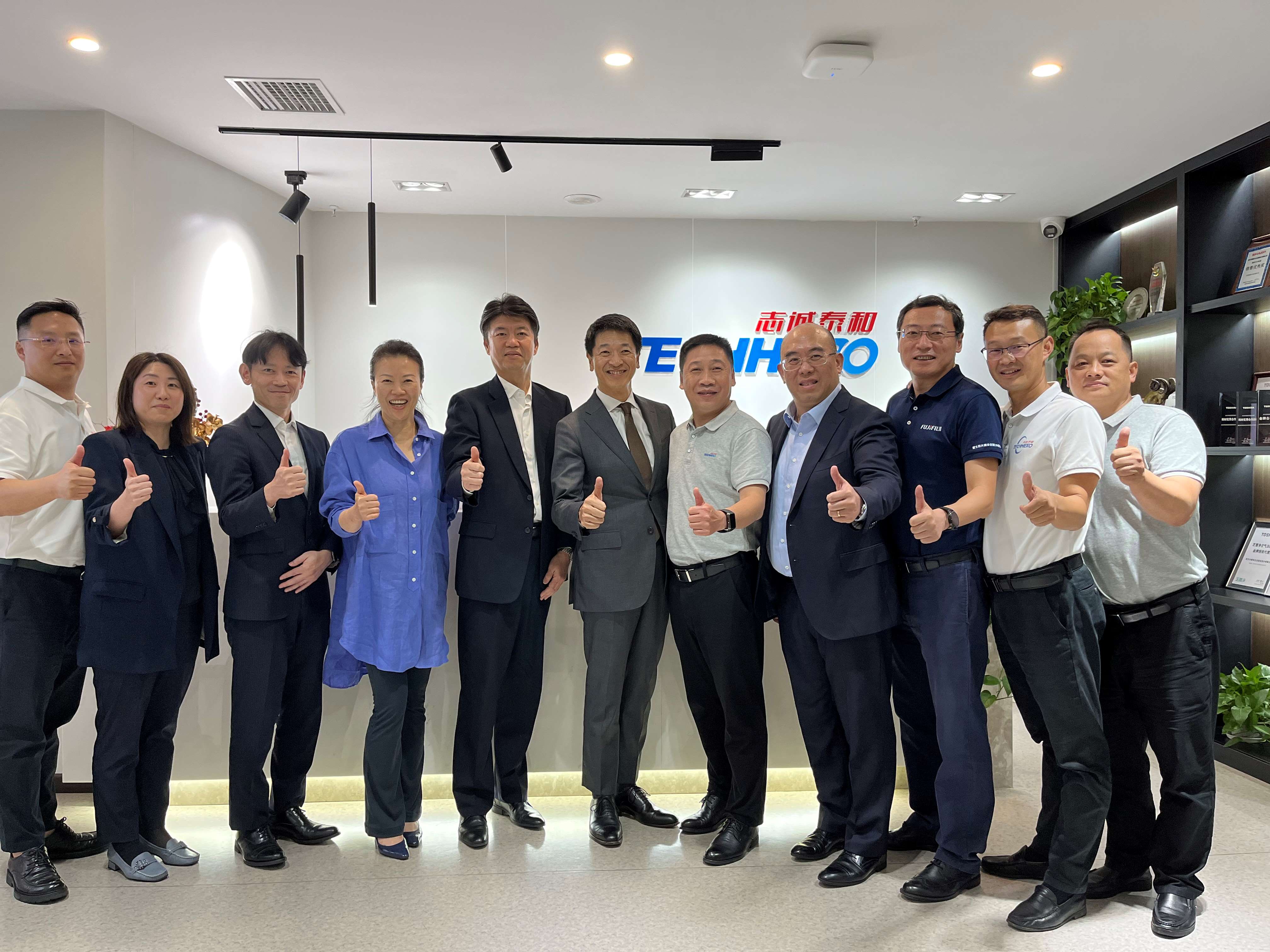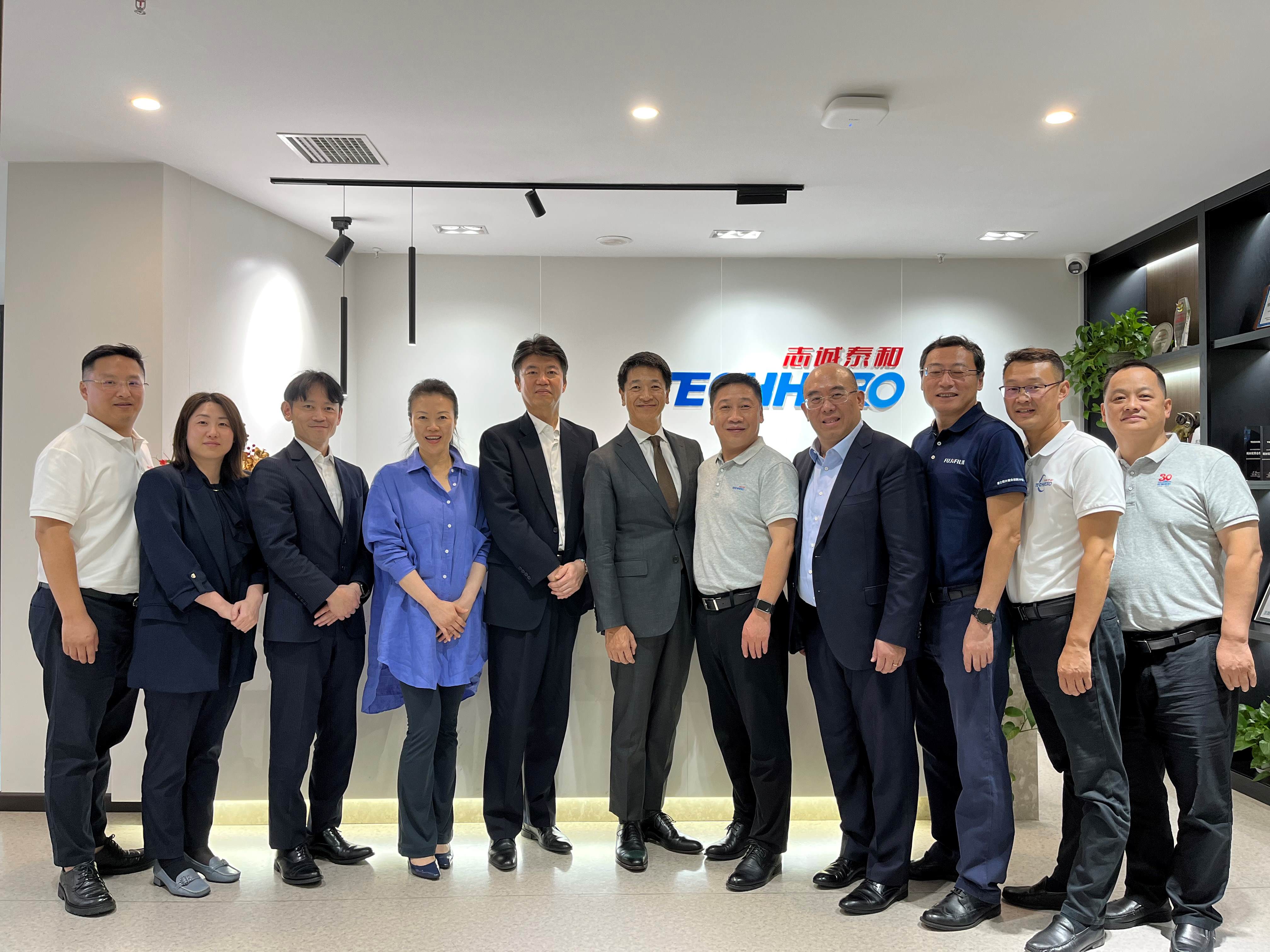 2023中国现代办公行业年会暨中国智能办公行业博览会在武汉举办期间,富士胶片商业创新(中国)有限公司董事长松本泰幸、副总裁小田和之、设备技术部总经理钱子浩、办公设备市场总监香西聪史、销售支持总监纪福雯、设备技术部高级销售经理王伟一行,莅临志诚泰和武汉分公司参观交流。